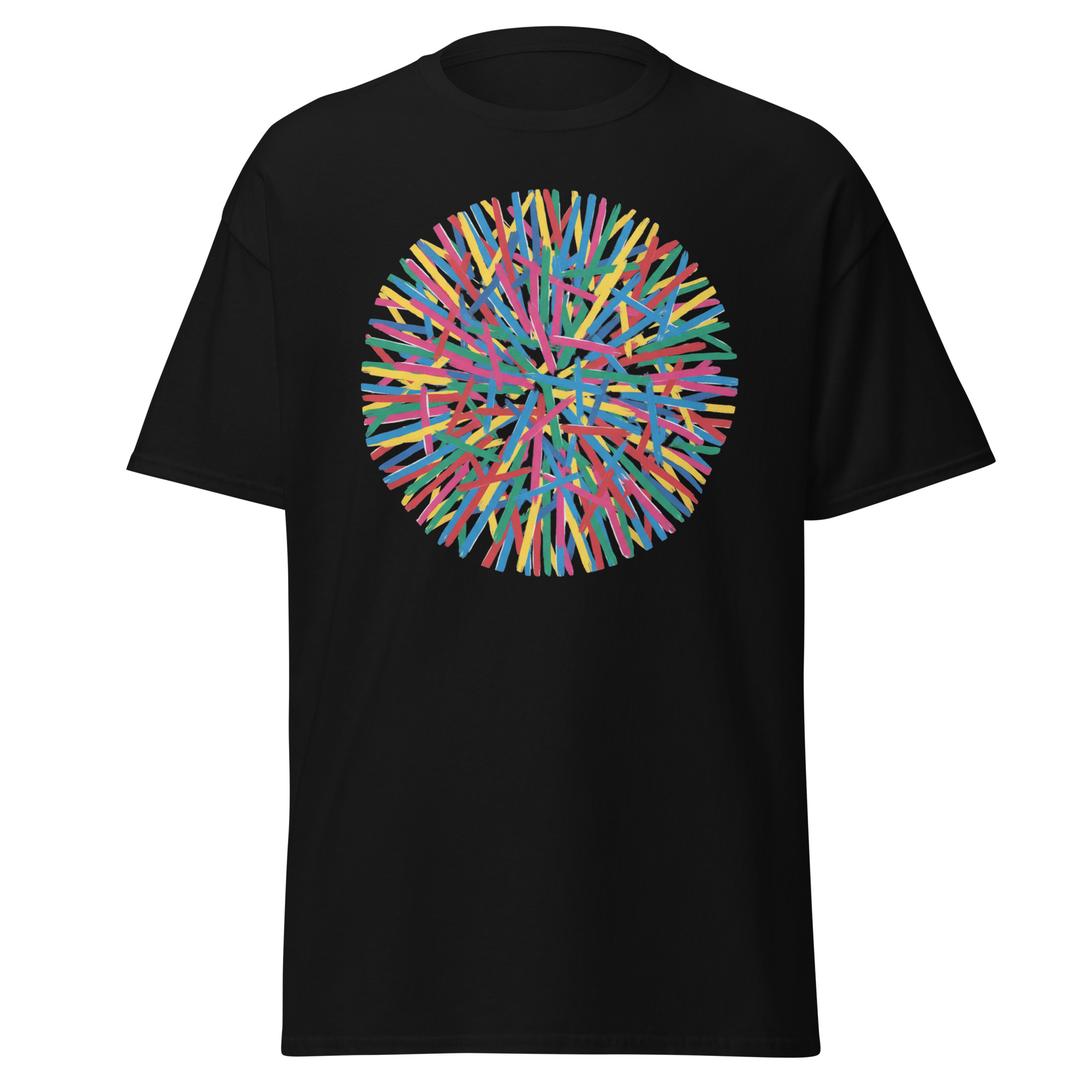 The Abstract Lines Tee features a bold geometric pattern of white intersecting lines that stand out beautifully on black or navy fabric. Its clean, minimalist style gives a modern art feel while keeping it versatile and stylish for any outfit. Perfect for those who love abstract designs and eye-catching simplicity.