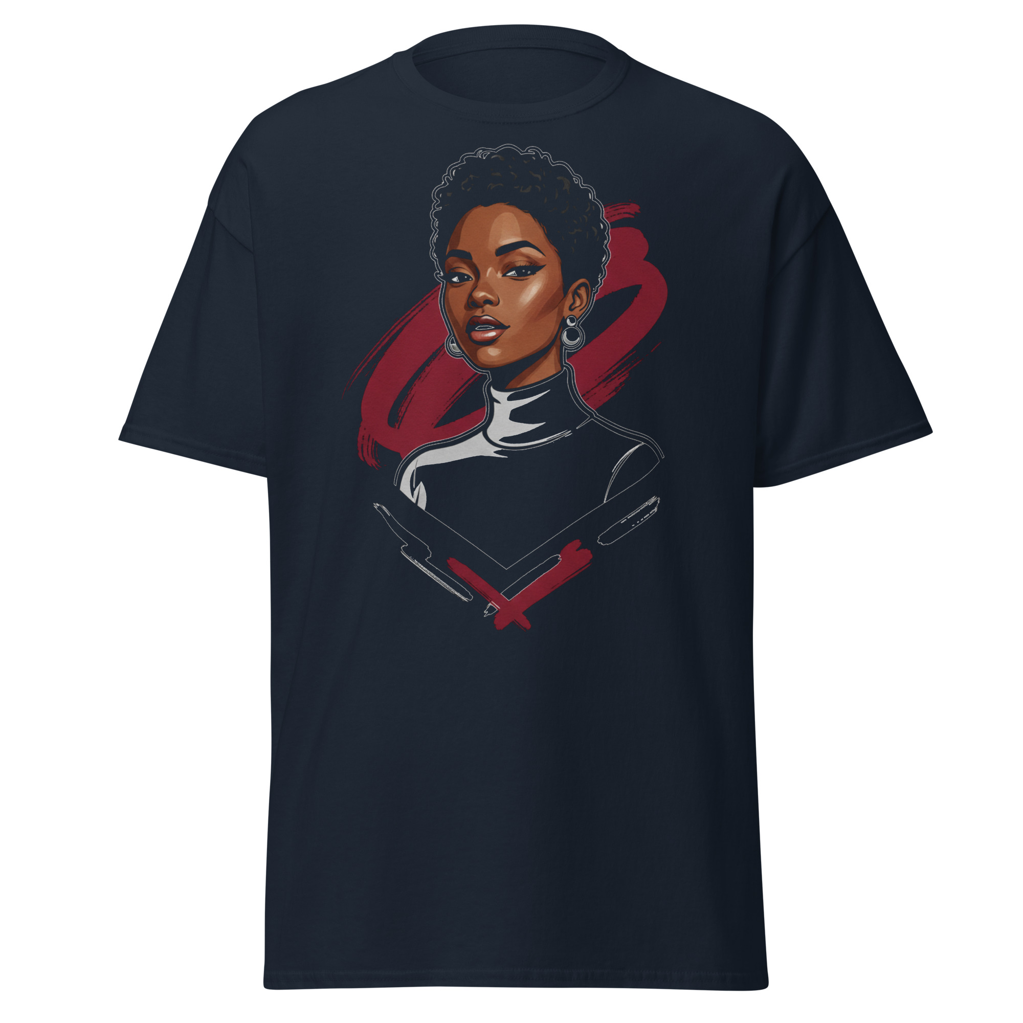 The “Elegant Woman in White Turtleneck” shirt highlights beauty and sophistication through a stunning vintage-inspired portrait. With rich tones and confident expression, this shirt is perfect for art lovers who appreciate elegance, culture, and style.