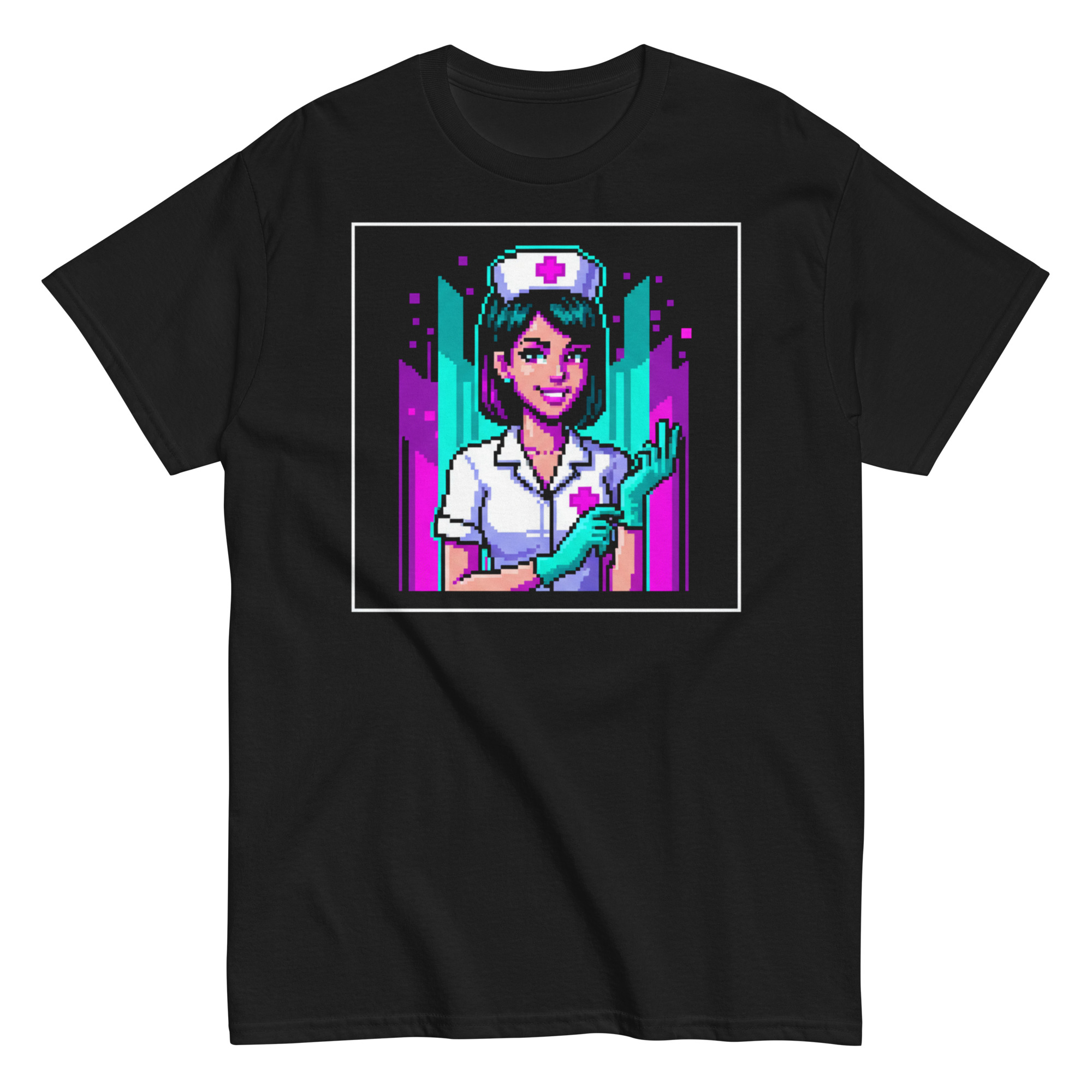 The Pixel Nurse Tee brings back old-school gaming charm with a fun 8-bit nurse design. Featuring bright pixel colors and classic retro styling, this shirt is perfect for gamers, collectors, and anyone who loves nostalgic art with a playful twist. Bold, colorful, and full of vintage attitude.