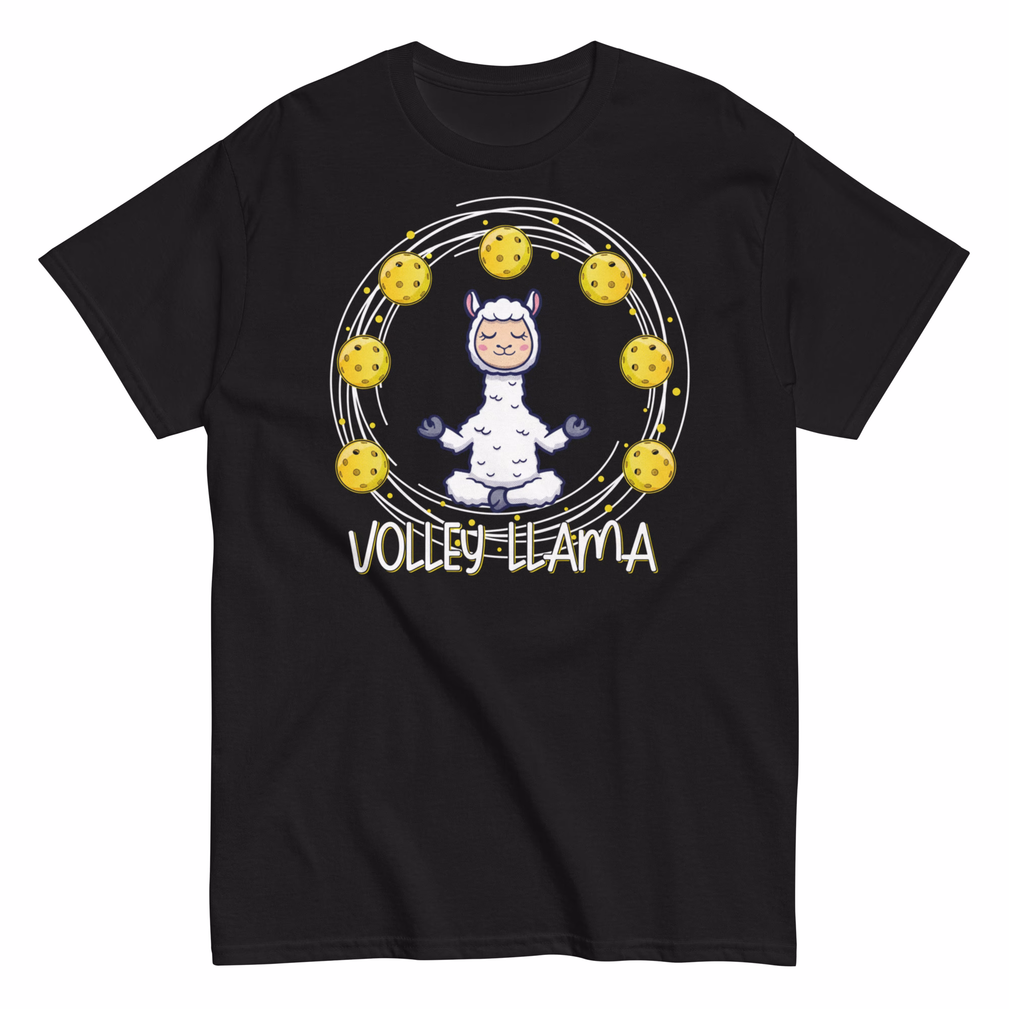 Stay calm and serve on with this hilarious Volley Llama t-shirt! Featuring a zen llama surrounded by pickleballs, it’s the perfect mix of peace and play. Ideal for pickleball lovers with a sense of humor, this soft and eye-catching tee makes a great gift for players who know balance—on and off the court.